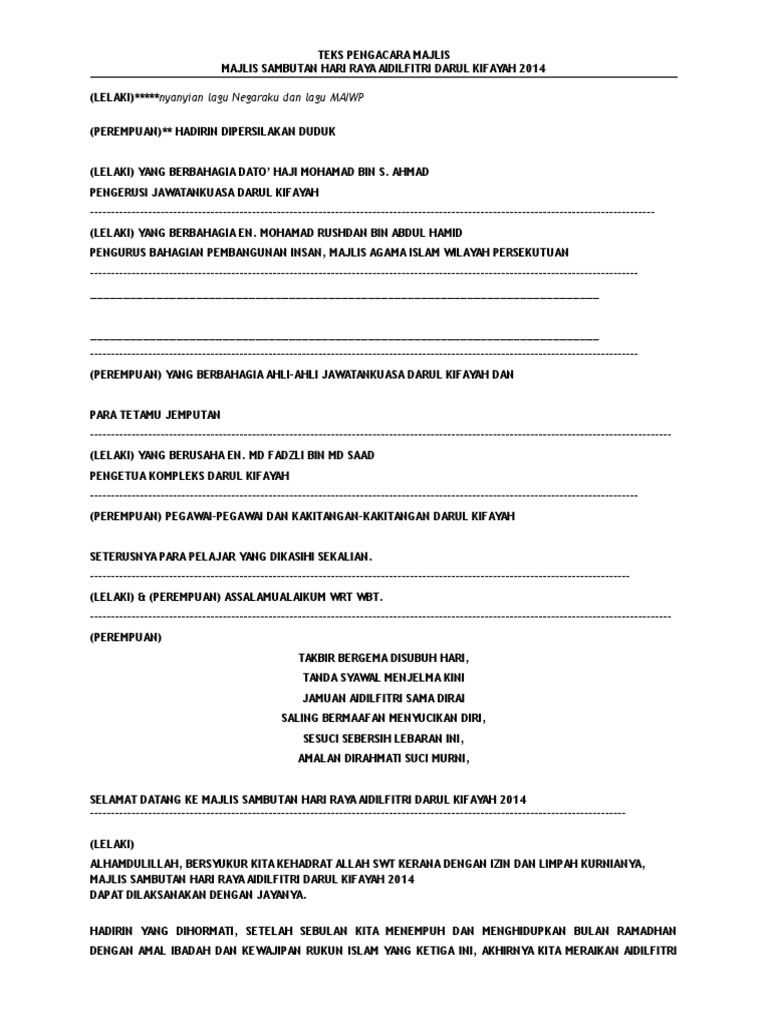 Teks Pengacara Majlis Jamuan Hari Raya Pdf